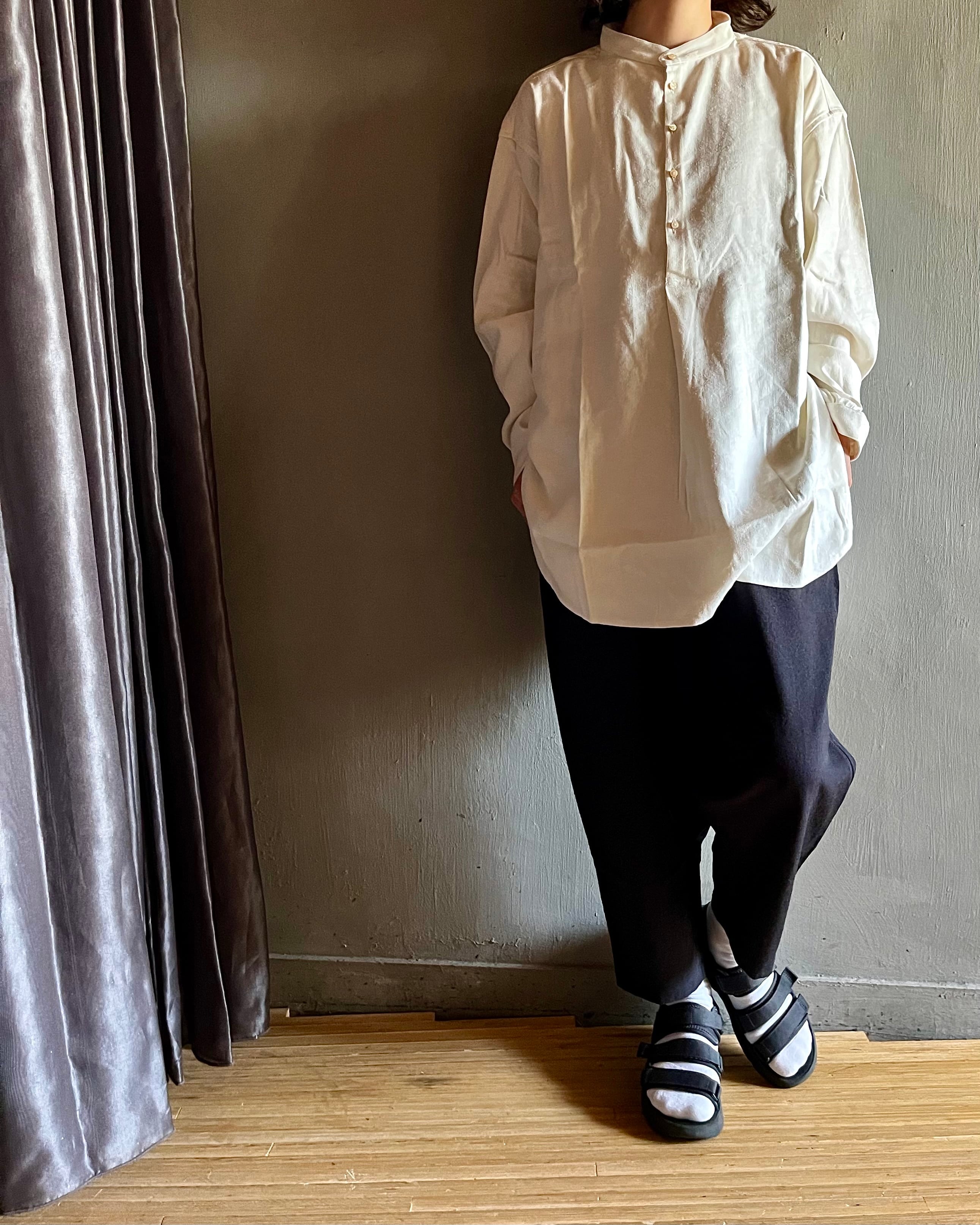 MITTAN |綾織絹麻プルオーバーシャツ SH-143 白