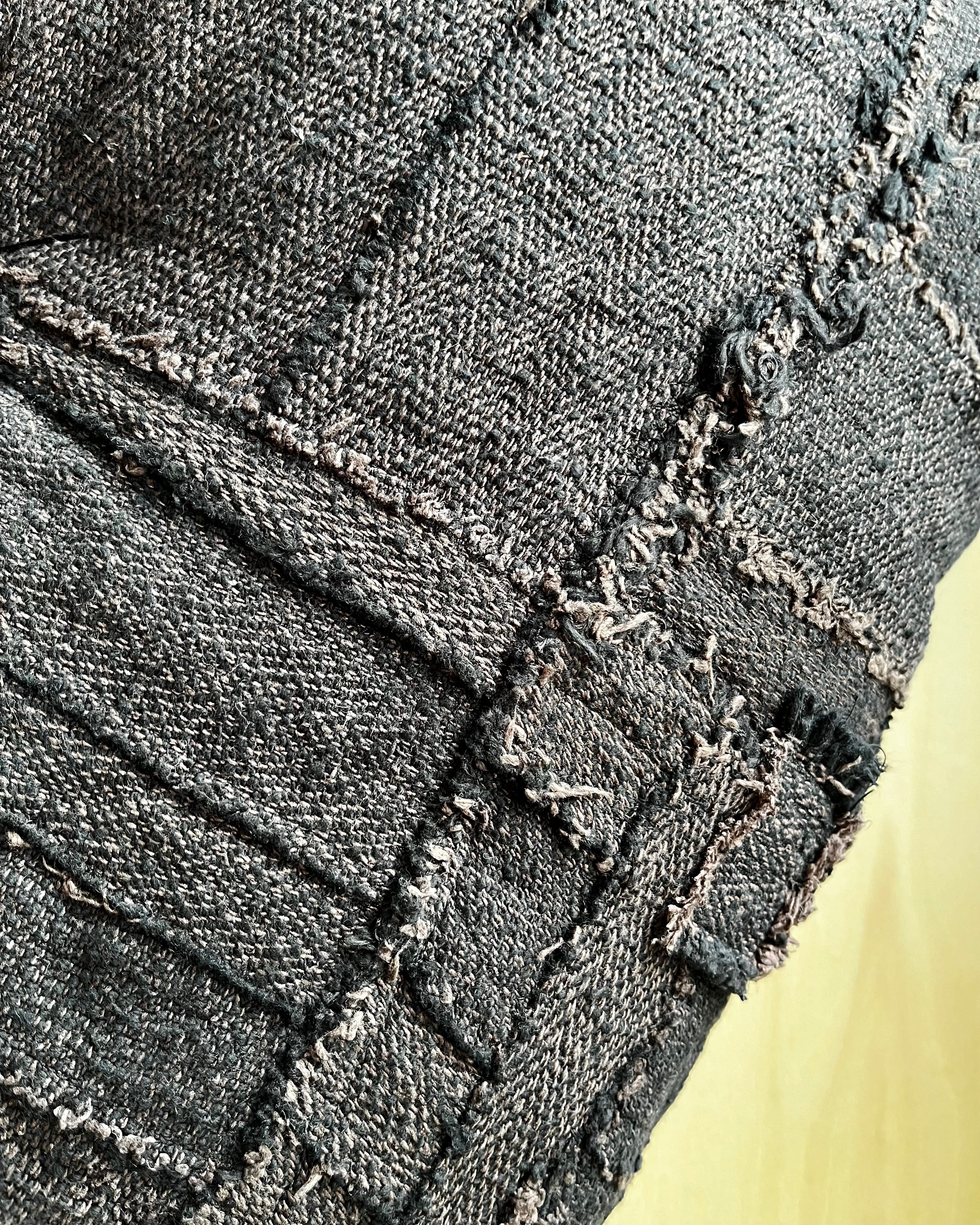 ガラ紡の節のある糸と、ゆっくり織るションヘル織機のやわらかな風合いが合わさり手織りのような仕上がりです。
