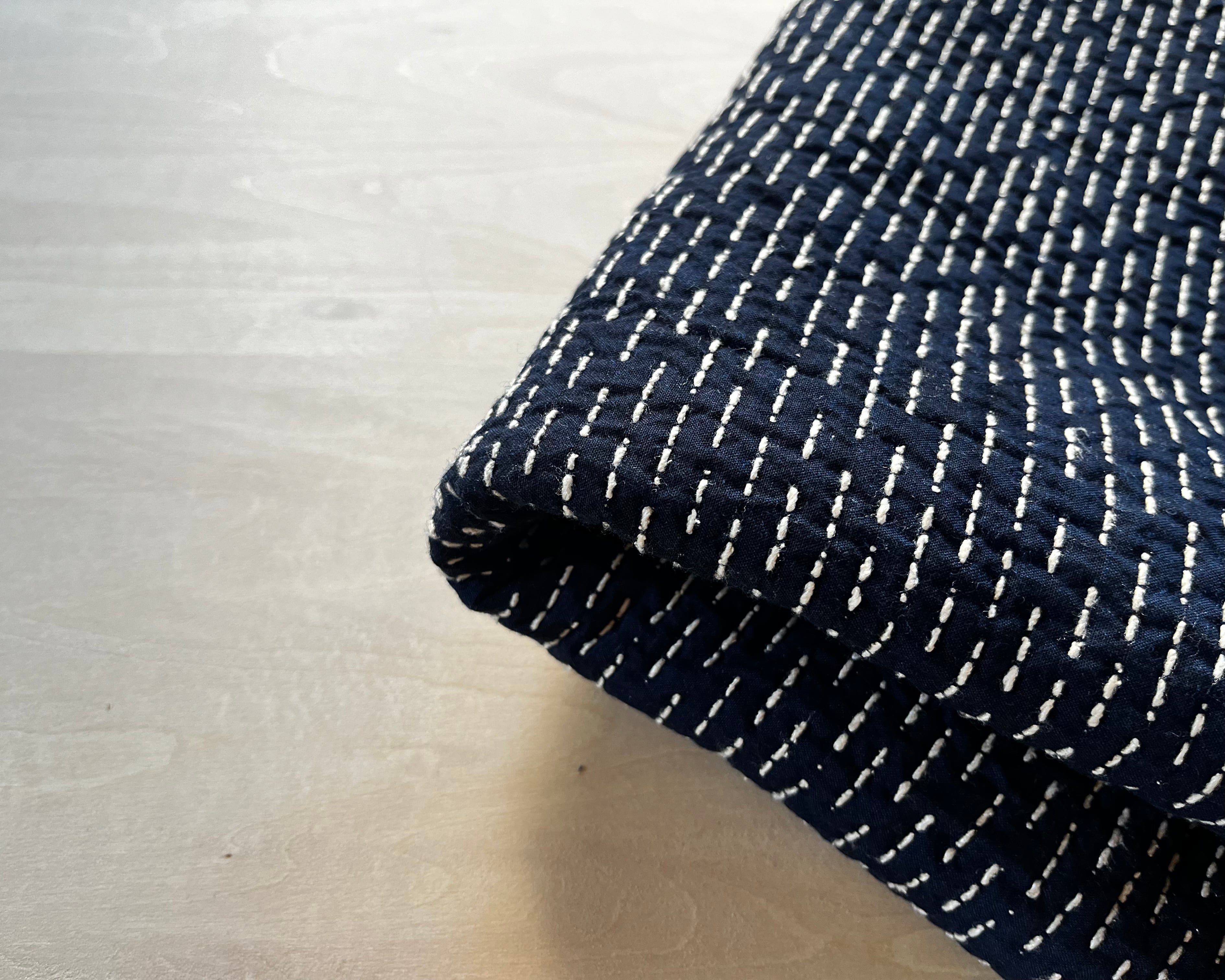 MITTAN| 中わた刺し子織ブランケット小 濃紺 SC-48