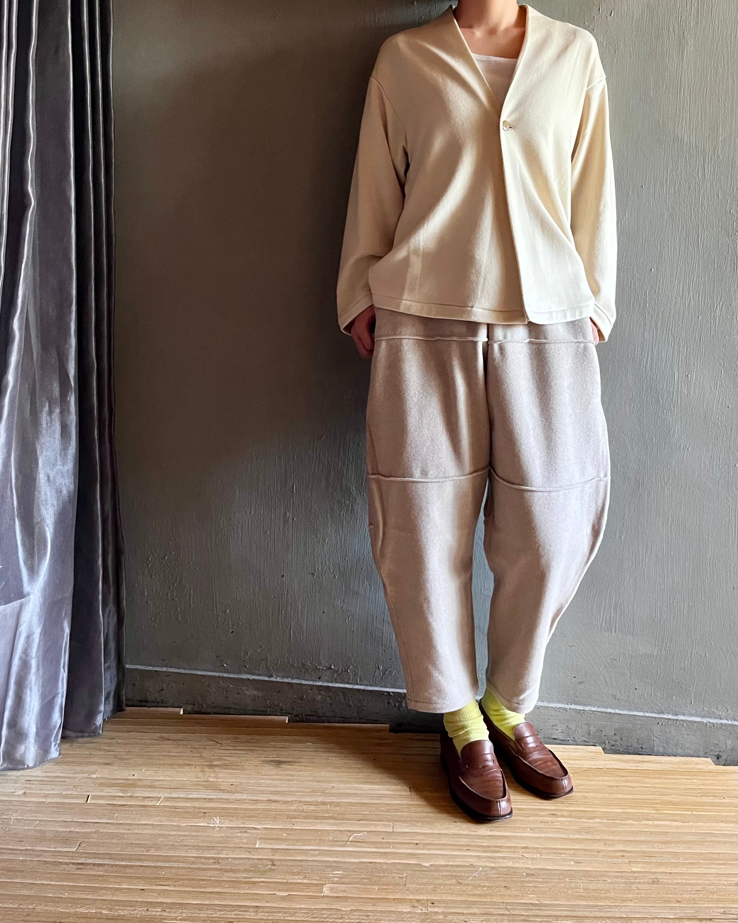 MITTAN|super120'sウール裏毛カーディガン 白茶 T-31