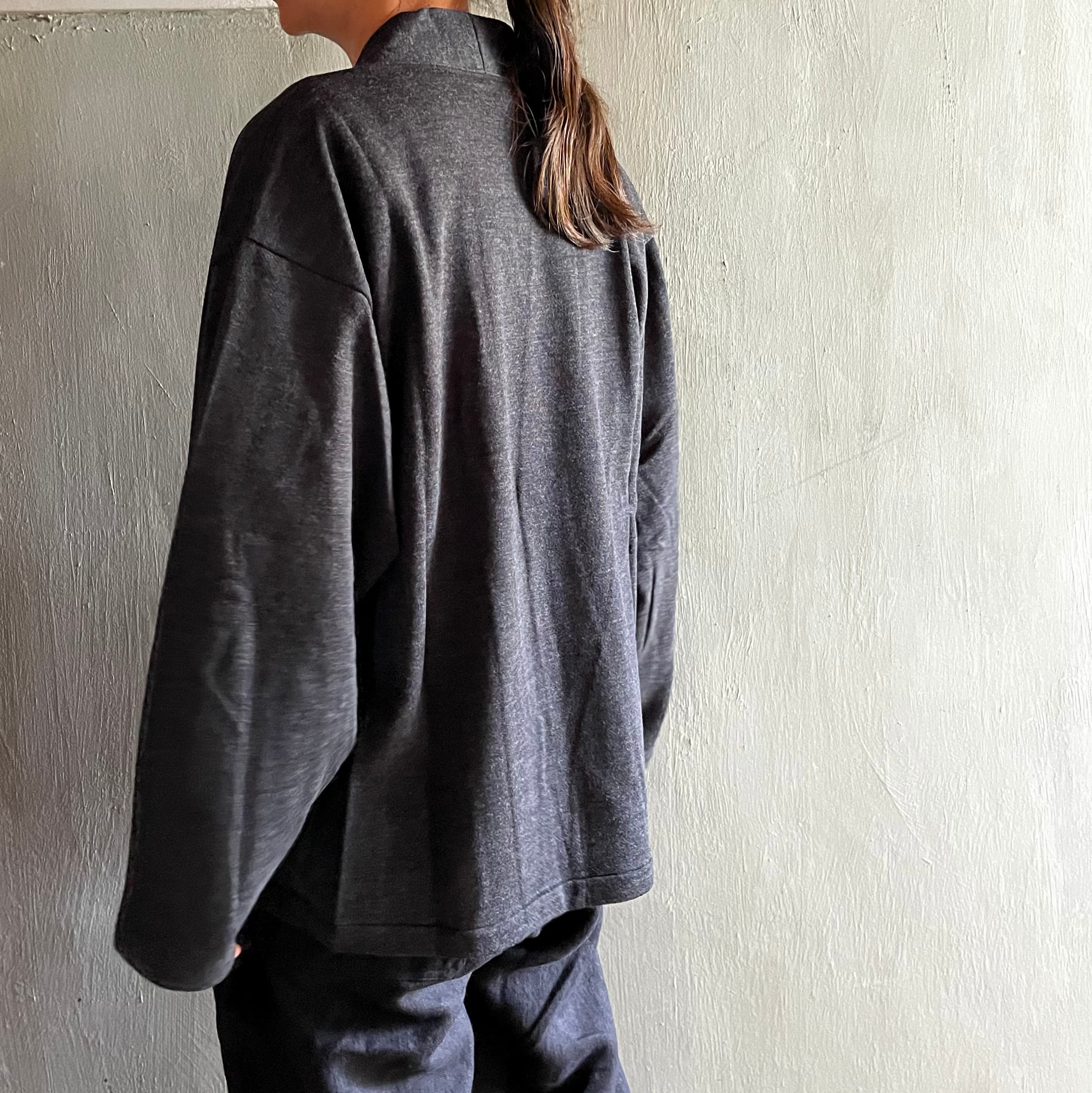 着物のような裁ち続きの衿が特徴のカーディガンです。端を続きにした見返しなど、デザインを最小限に抑えたミニマルなデザインです。ボタンにはタグワヤシを原料としたナットボタンを使用しています。