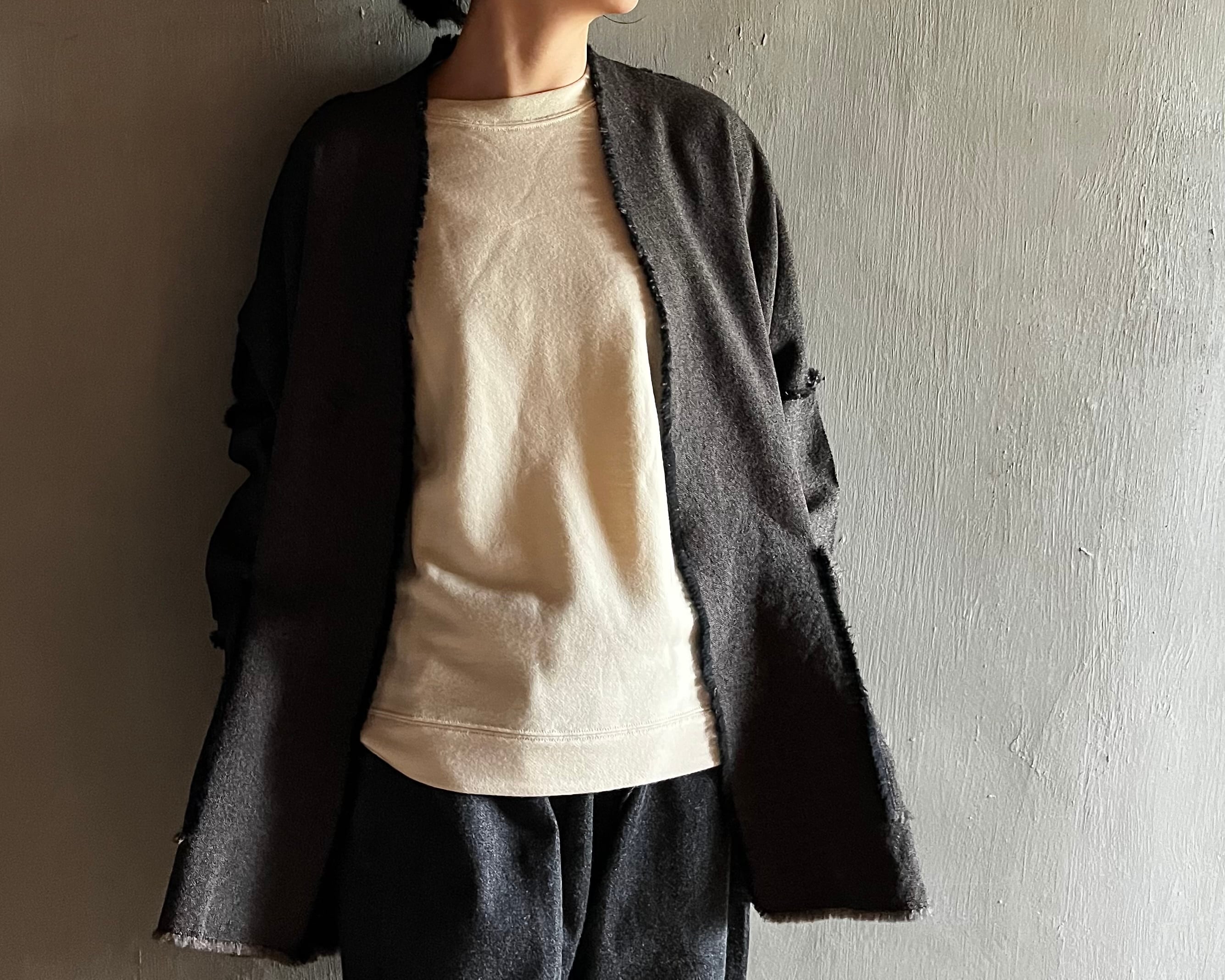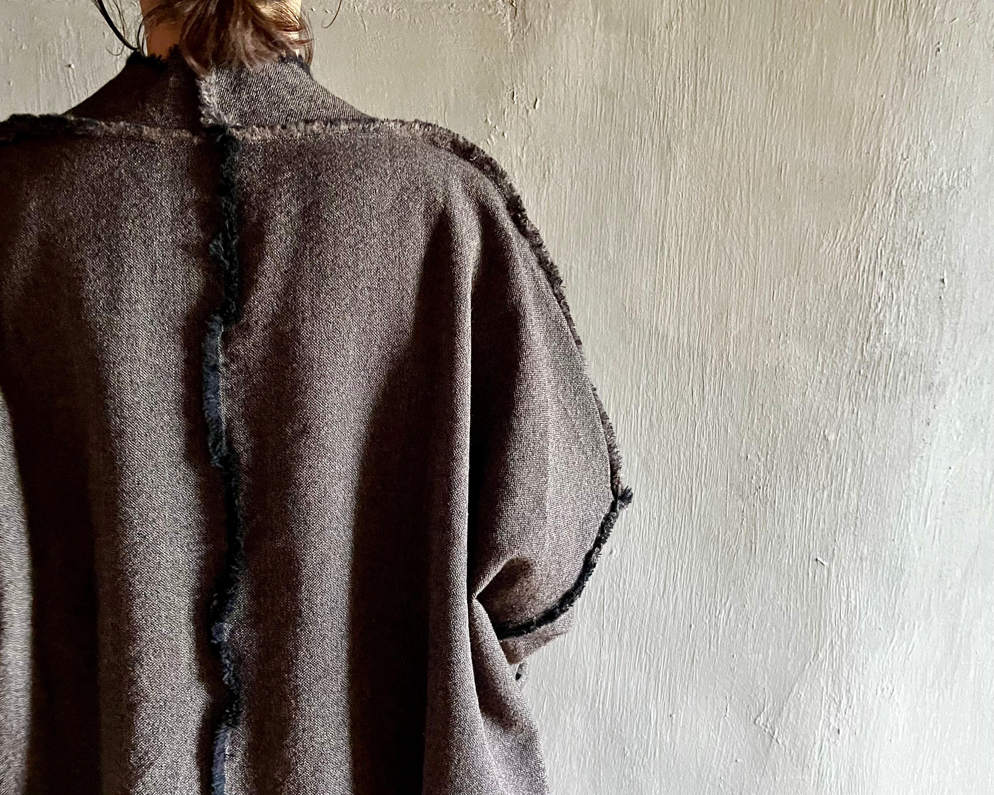 身頃から襟まで一枚裁ちの裁ち切り仕立てにし