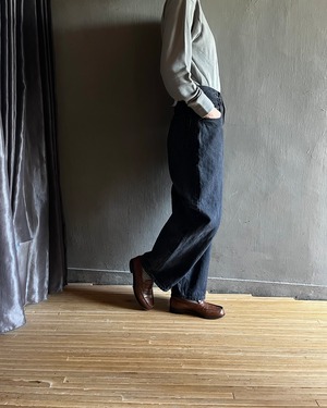 ゆったりとしたワタリから裾まで、そのままズドンと落ちていくシルエット。