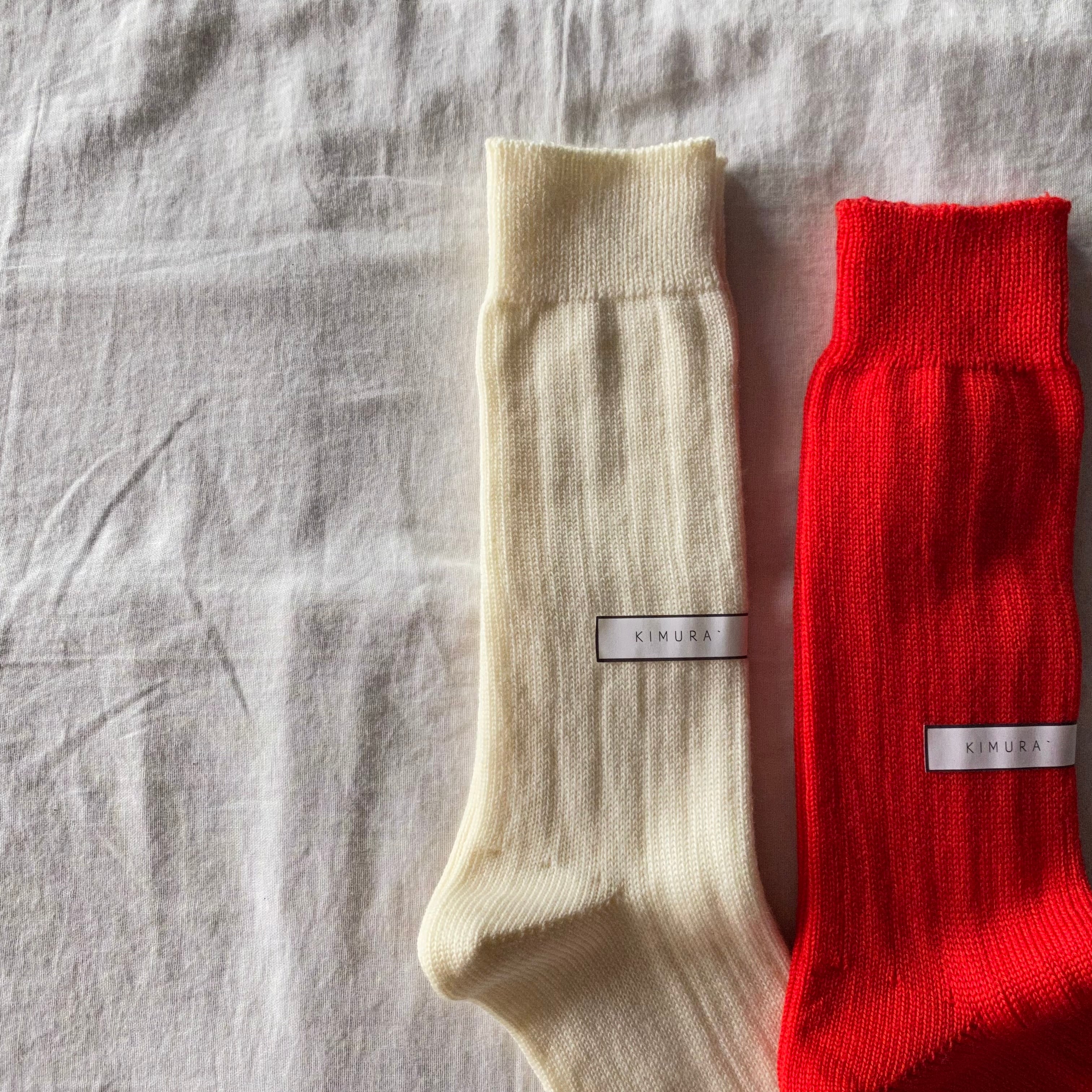 KIMURA`|MERINO WOOL RIB SOCKS 22-24cm Off white