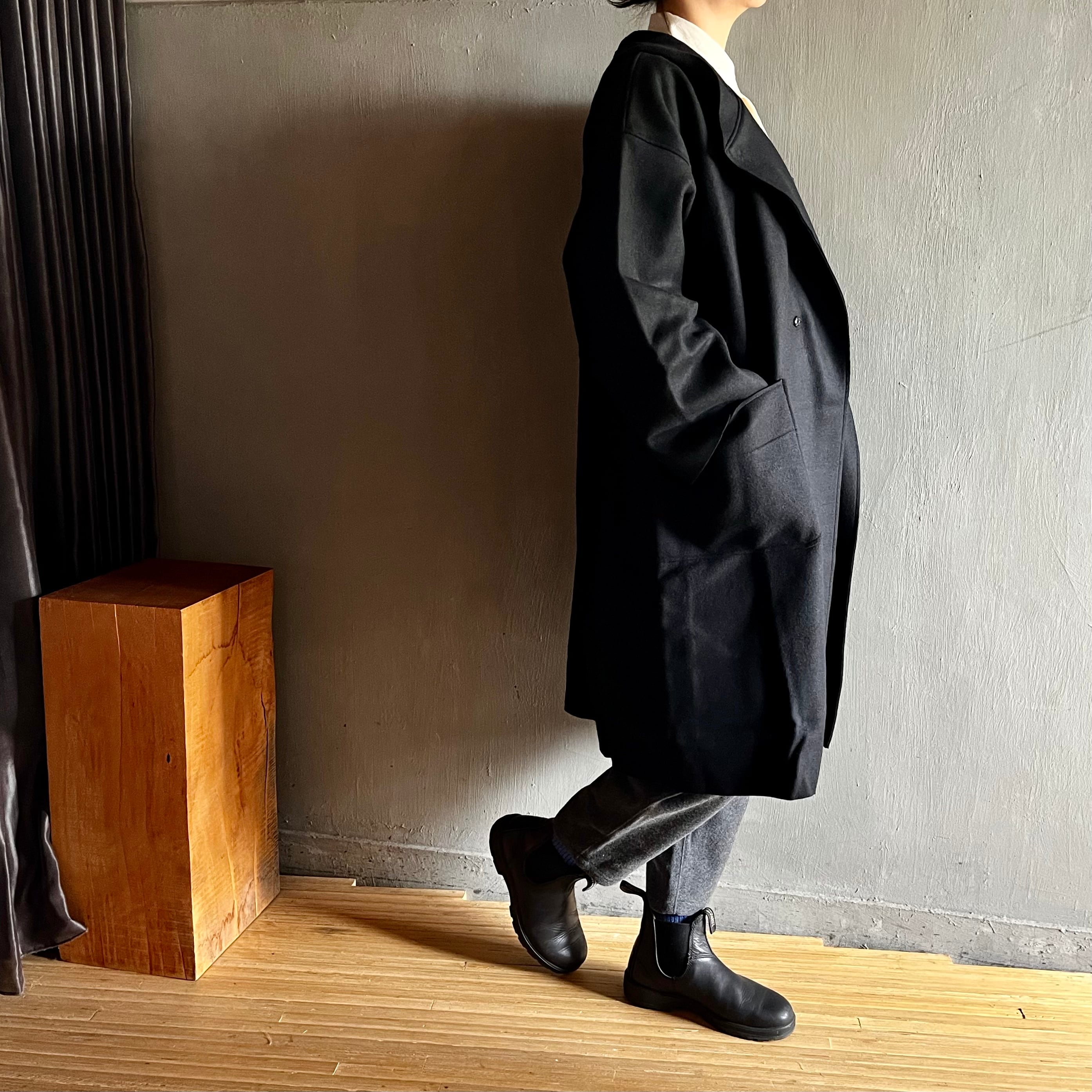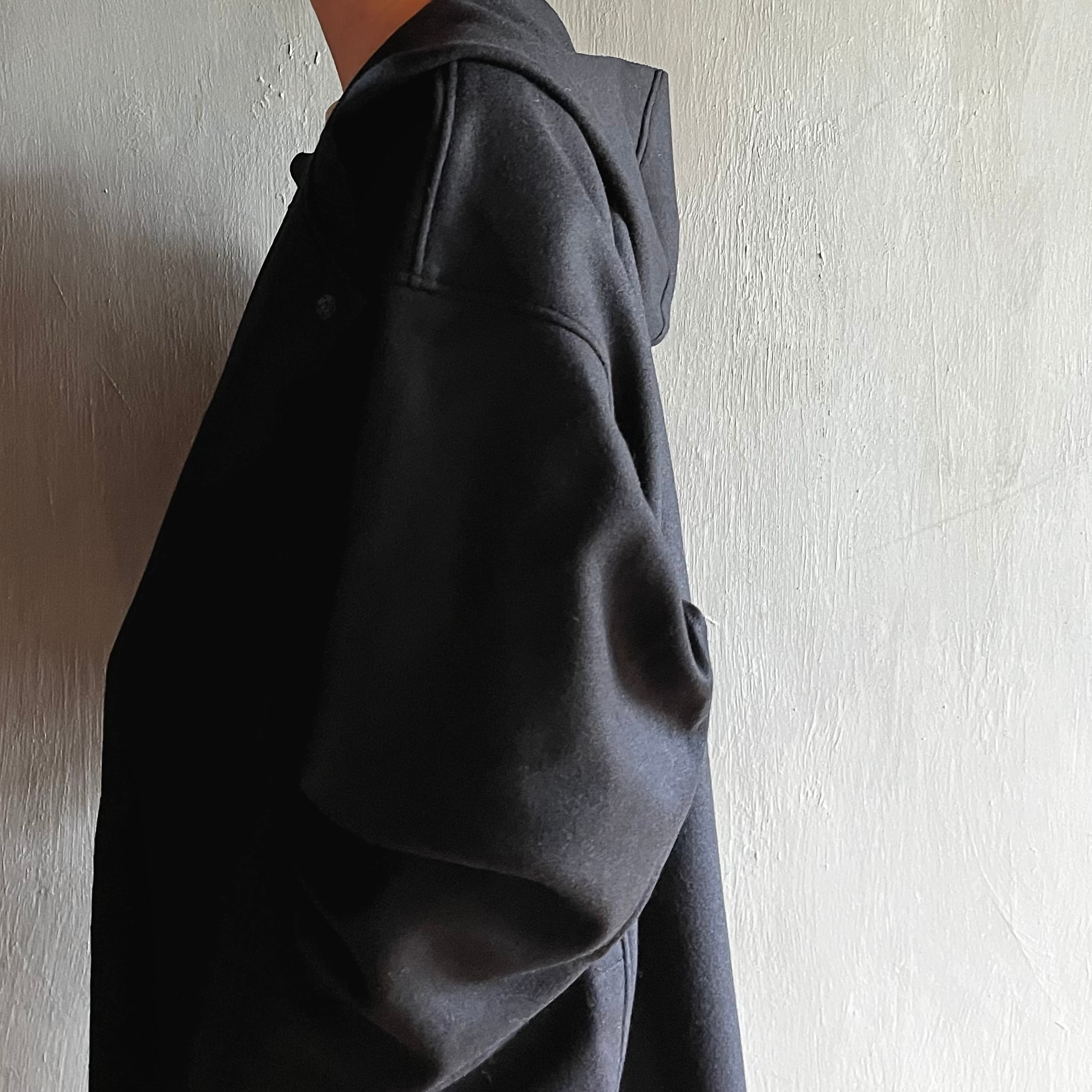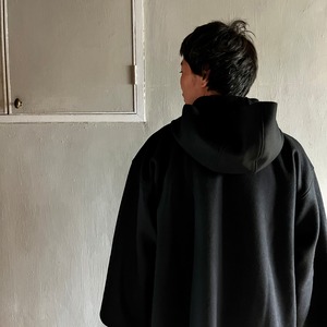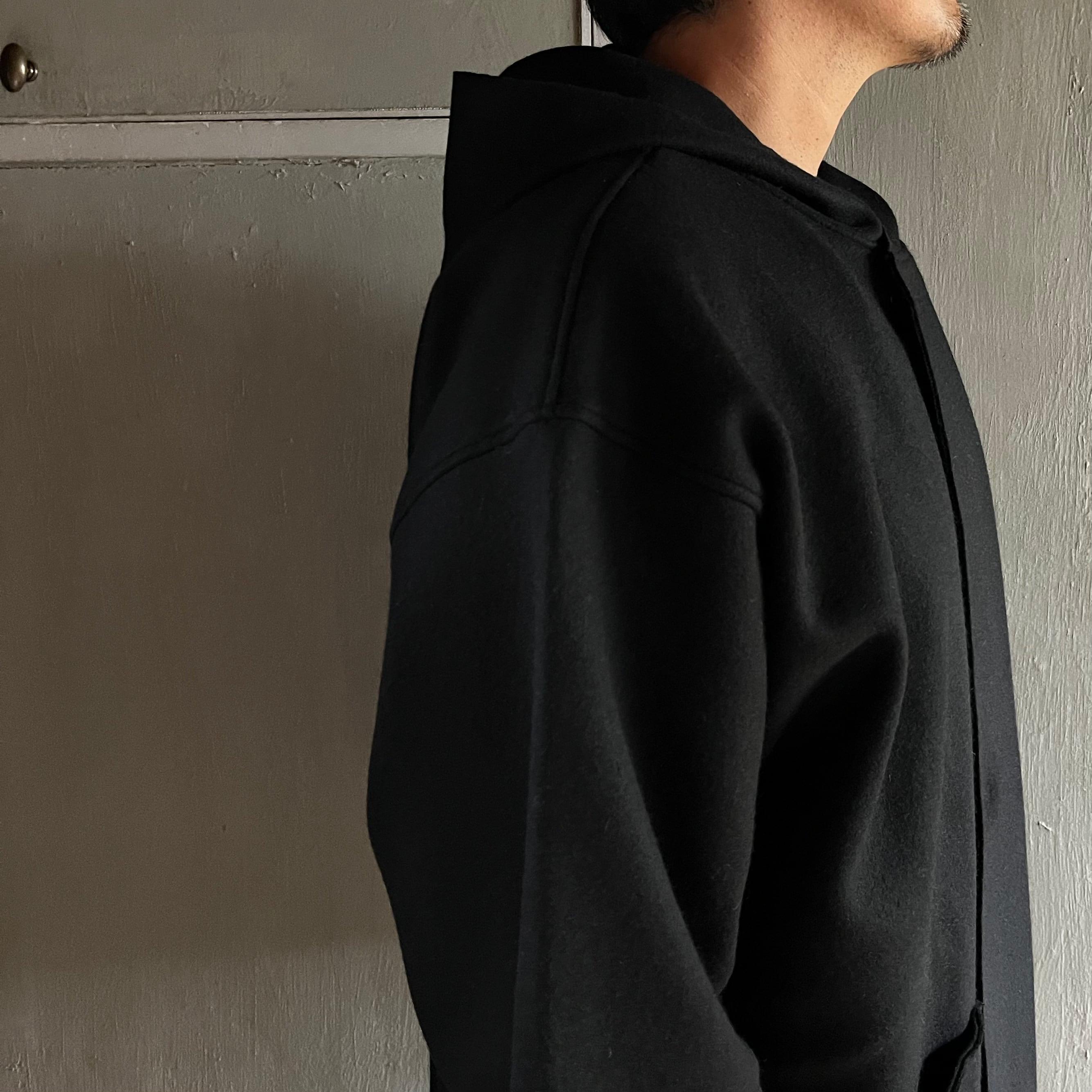 MITTAN|圧縮ウールニットフードコート 黒 CT-49